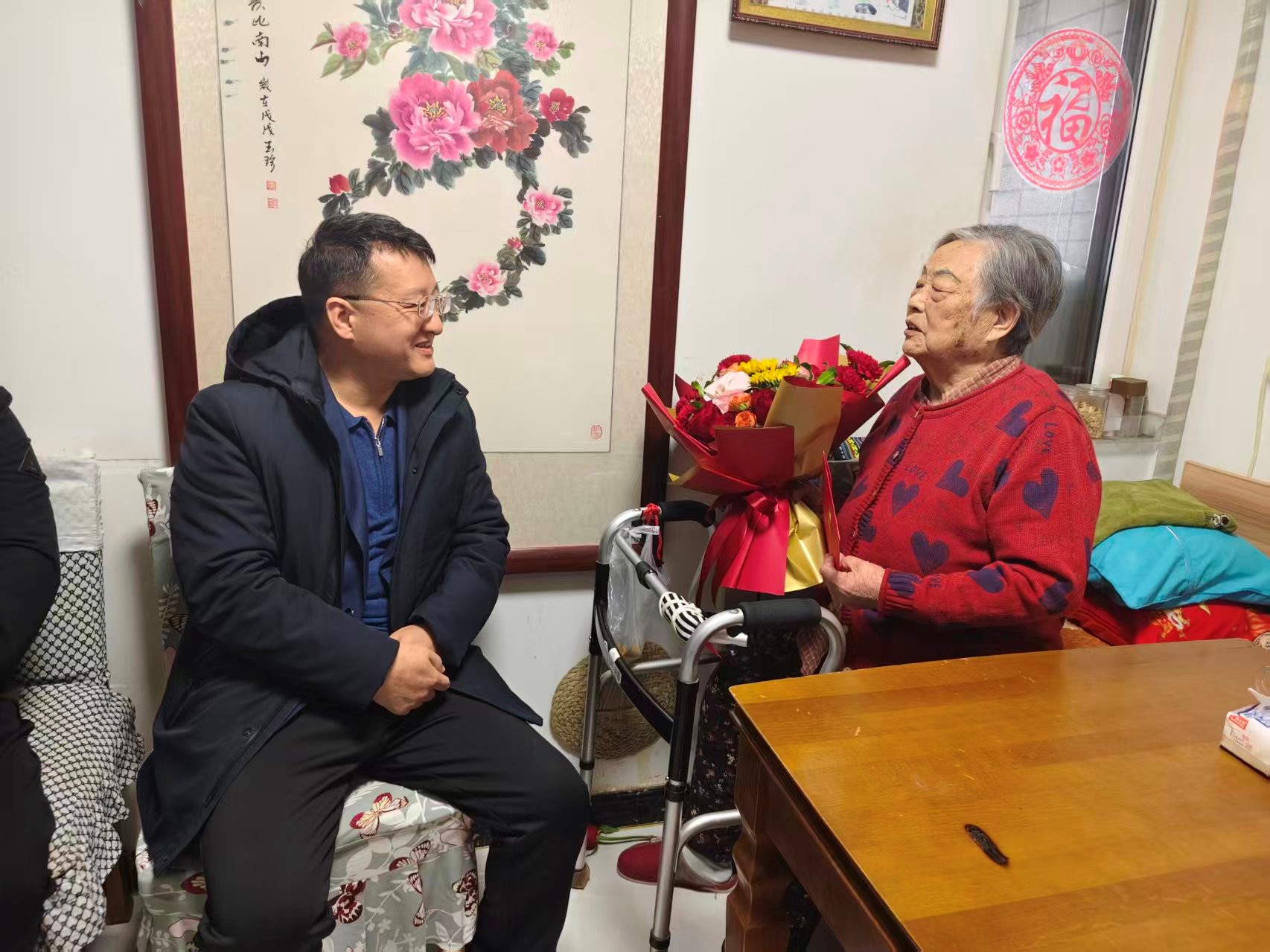 在濟(jì)糧集團(tuán)張秀翠家中,崔鵬為老人送上新春佳節(jié)美好祝福,認(rèn)真傾聽老干部對集團(tuán)工作的意見建議。已92歲高齡的張秀翠老人曾在濟(jì)南面粉廠醫(yī)務(wù)室擔(dān)任醫(yī)師,工作任勞任怨。在交流中,張秀翠老人回憶起往昔的奮斗歲月,眼神中滿是堅(jiān)定與自豪。崔鵬對老干部為企業(yè)發(fā)展作出的積極貢獻(xiàn)表示誠摯感謝與深切敬意,他叮囑老人要保重身體、安享晚年,同時希望老人繼續(xù)發(fā)揮經(jīng)驗(yàn)優(yōu)勢,多為集團(tuán)的建設(shè)發(fā)展提出寶貴意見。